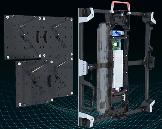 - We provide a frame structure that can be mounted on the wall. - The cabinet can be fixed to the frame with magnets, which is very convenient to install. - The modules, power supply, and card can be taken out from the front of the screen, which is very convenient for maintenance. - The die-cast cabinet has excellent flatness and light weight, about 8kg/cabinet, and the thickness of the whole screen is only 130mm when it is installed on the wall.